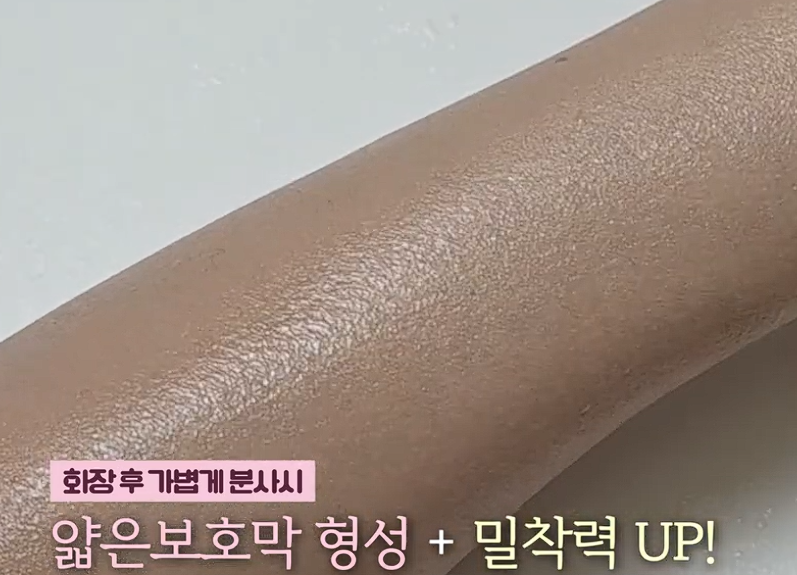 일부 사용자들이 겪는 '밀림 현상'은 이 제품의 장점인 '보습 필름막' 때문입니다. 메이크업 위에 너무 가깝게, 여러 번 뿌리면 오일 성분과 결합해 화장이 들뜰 수 있어요.
