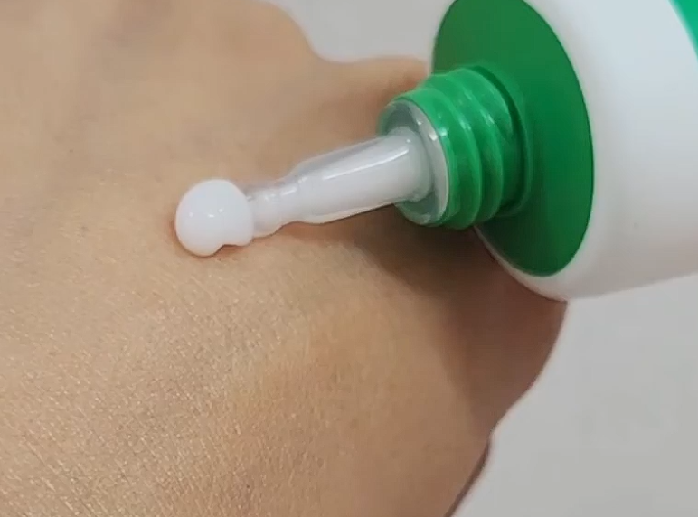 2. 콩알만큼의 양을 덜어 얼굴 전체에 얇게 펴 바릅니다.
